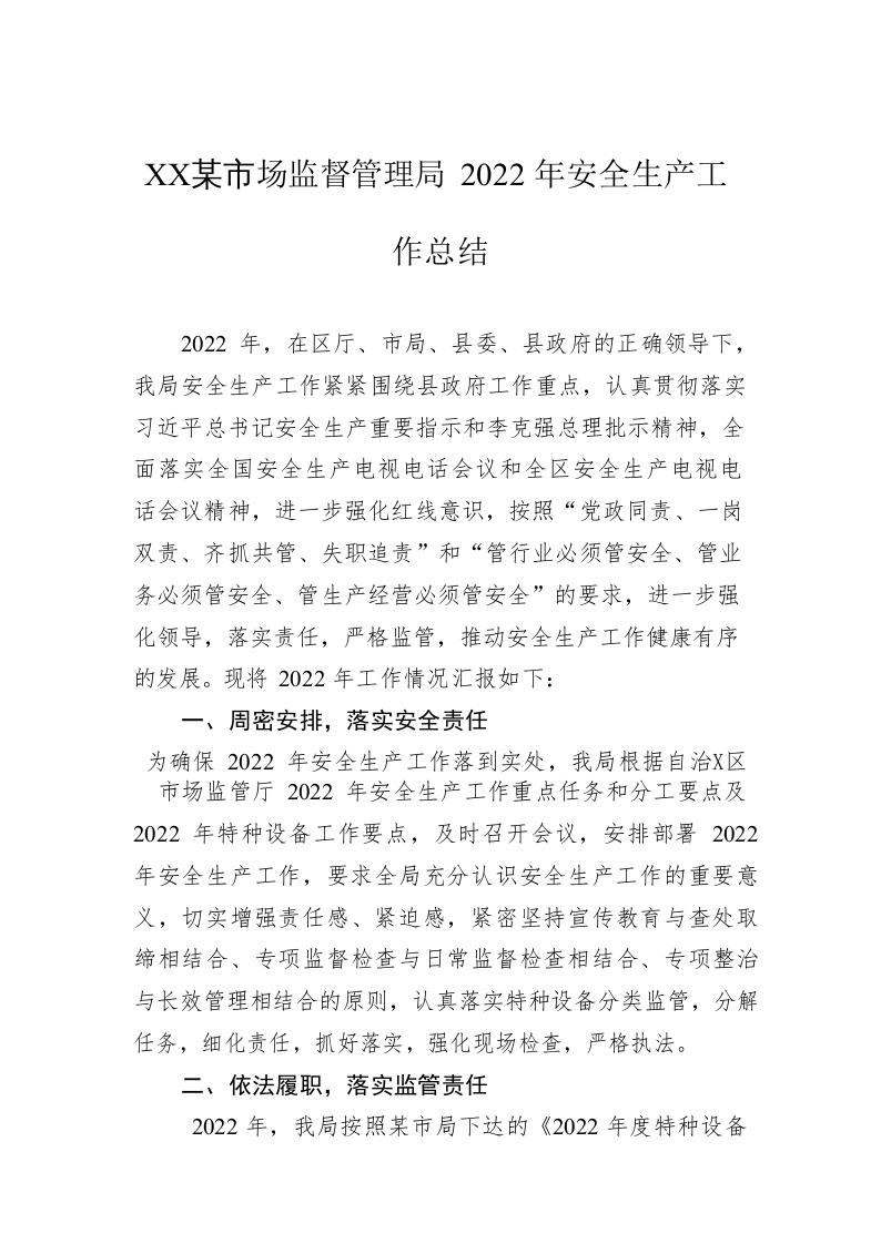 / XX县市场监督管理局2022年安全生产工作总结(20221123)