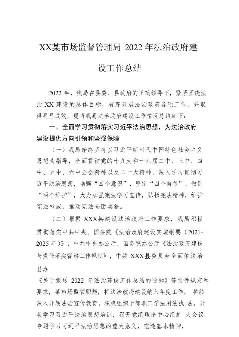 / XX县市场监督管理局2022年法治政府建设工作总结(20221222)