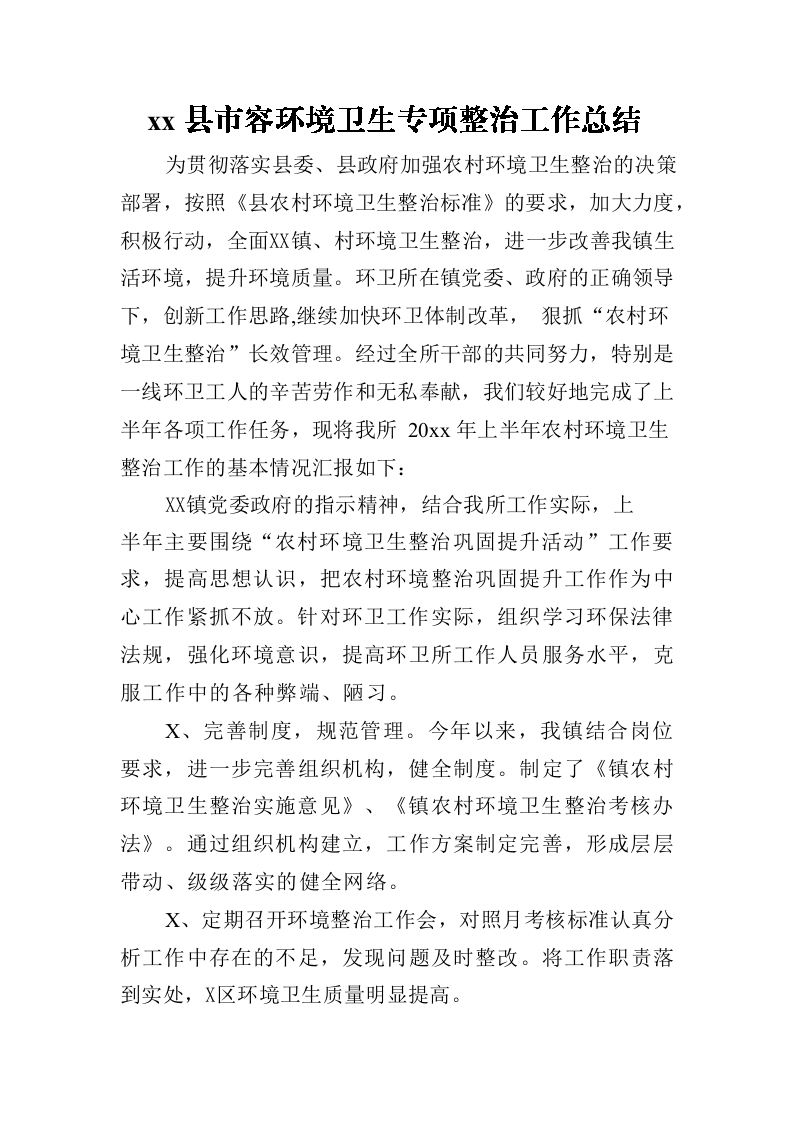 / xx县市容环境卫生专项整治工作总结