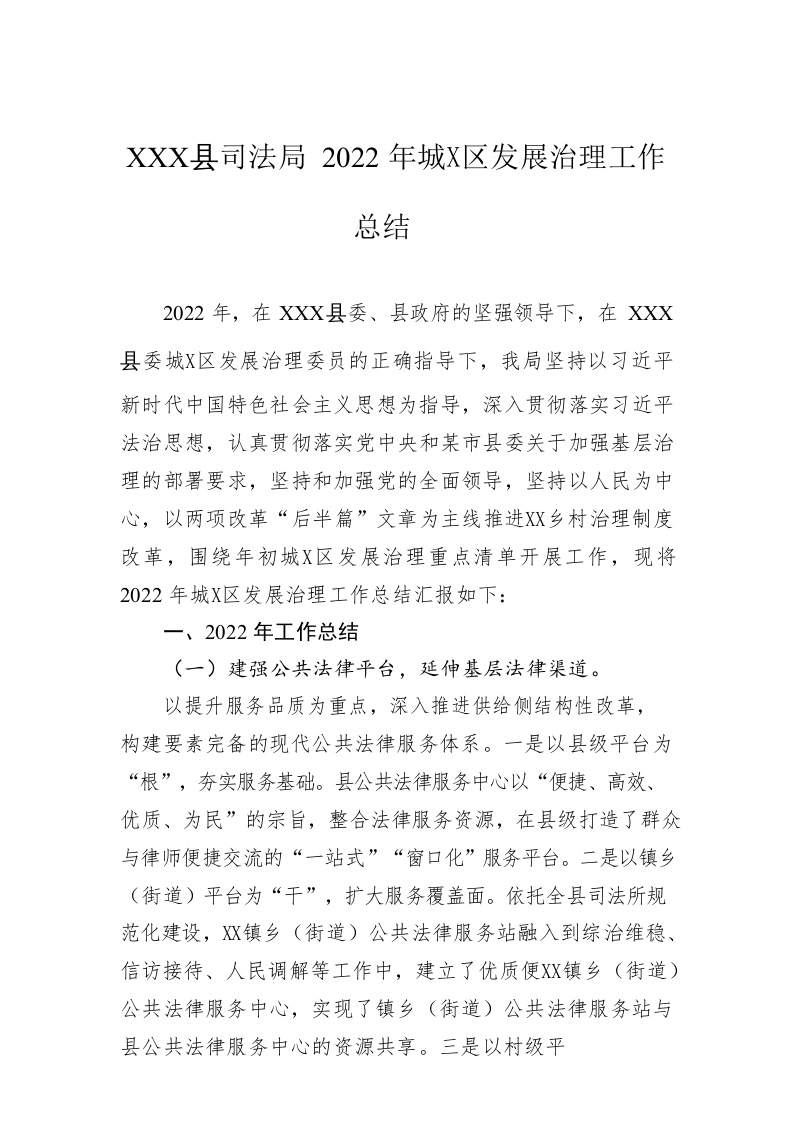 / XX县司法局 2022年城乡社区发展治理工作总结(20221207)