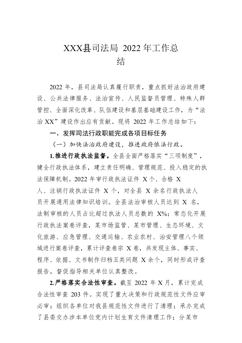 XX县司法局2022年法治政府建设工作总结(20221215)