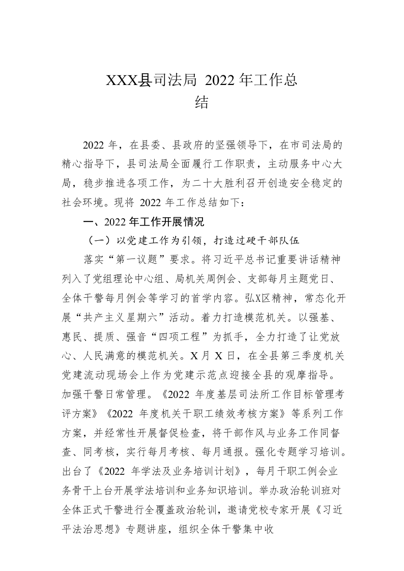 / XX县司法局2022年工作总结(20221204)