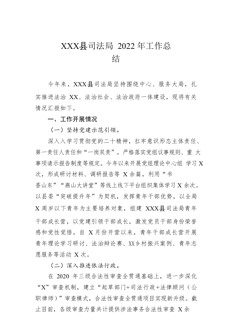 / XX县司法局2022年工作总结(20221227)