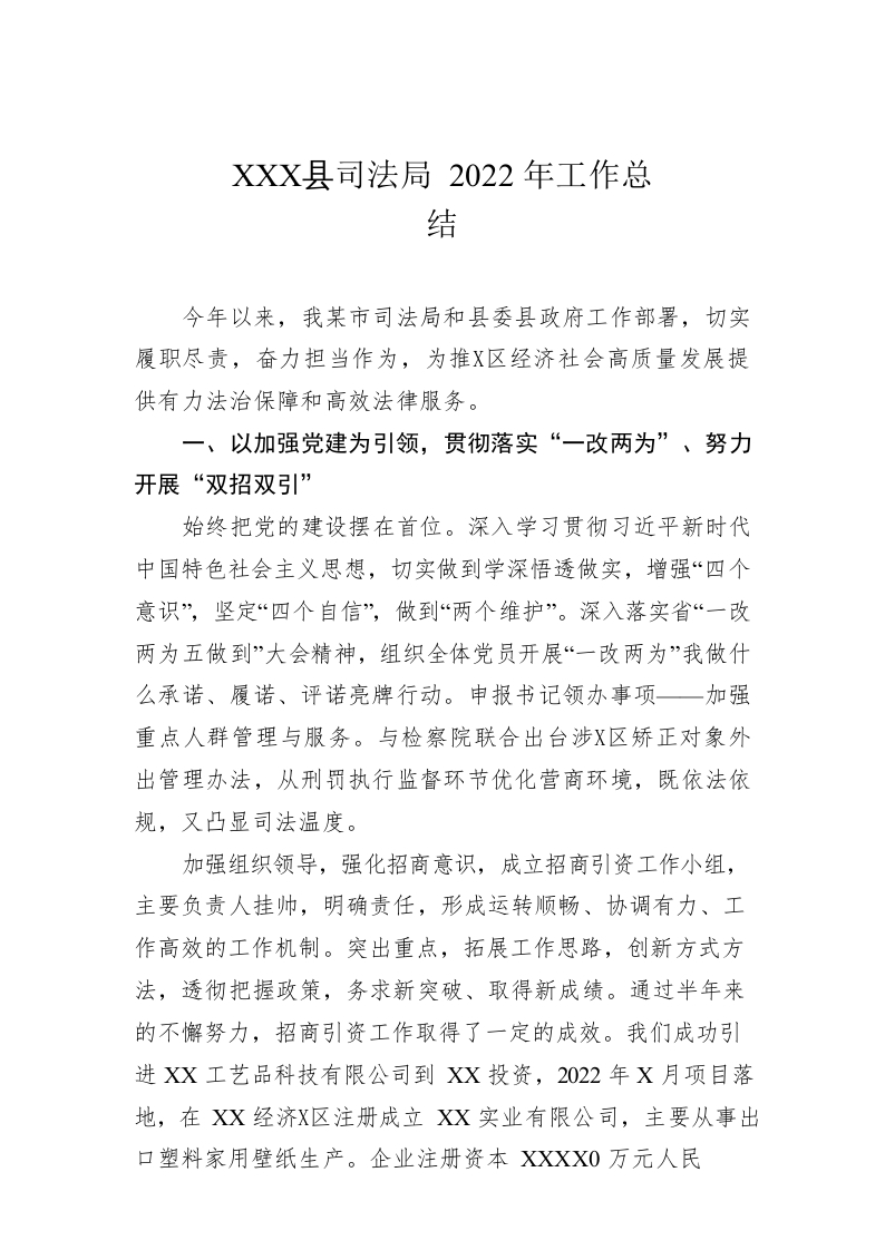 XX县司法局2022年工作总结和2023年工作安排(20221216)
