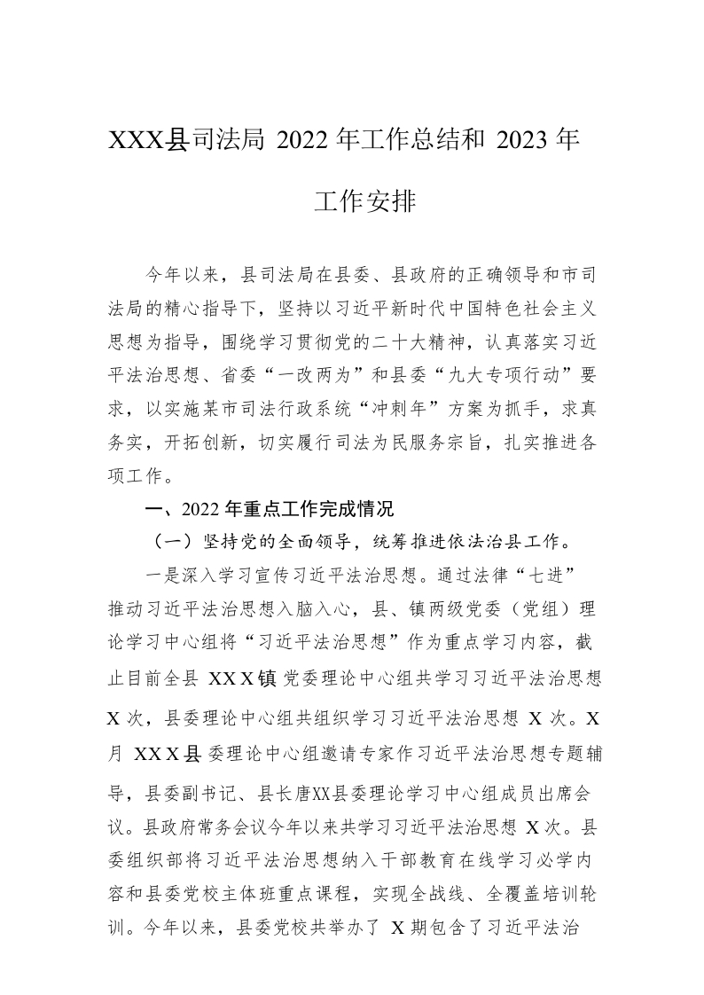 / XX县司法局2022年工作总结和2023年工作安排(20221216)