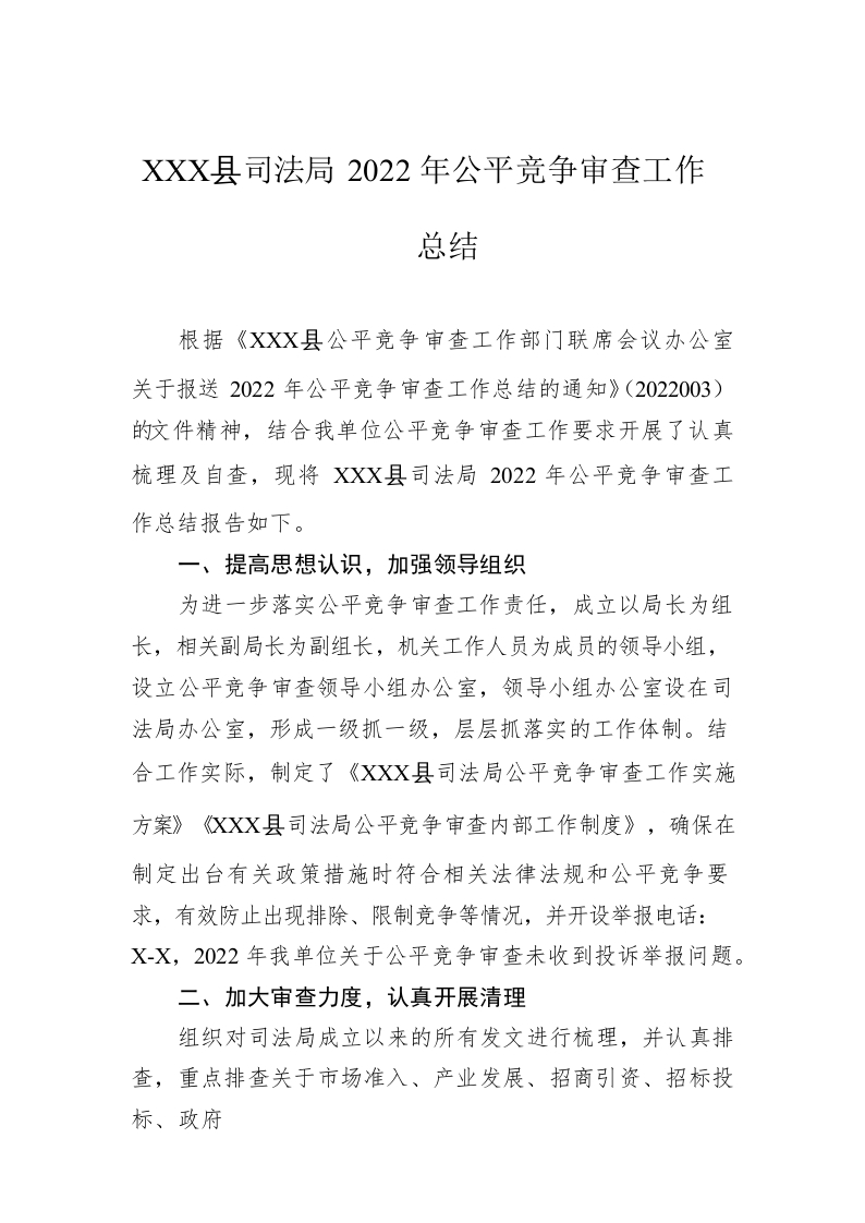 / XX县司法局2022年公平竞争审查工作总结(20221128)