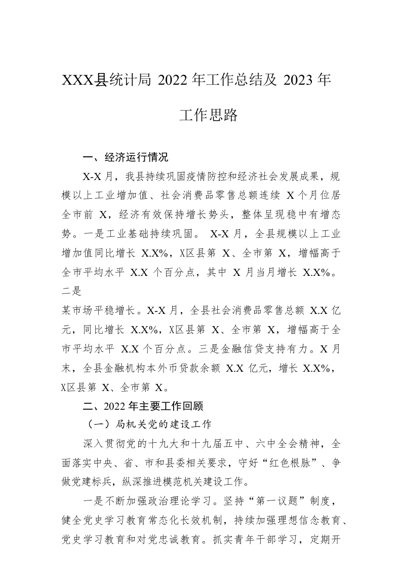 / XX县统计局2022年工作总结及2023年工作思路(20221124)