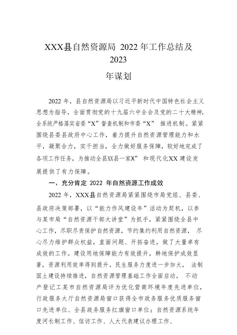 / XX县自然资源局2022年工作总结及2023年谋划