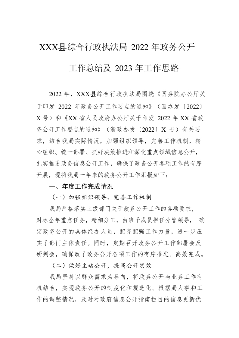 / XX县综合行政执法局2022年政务公开工作总结及2023年工作思路(20221222)
