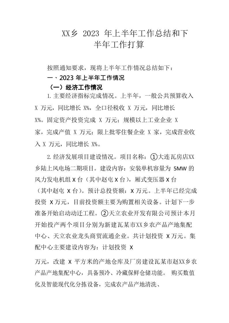 / XX乡2023年上半年工作总结及下半年工作打算