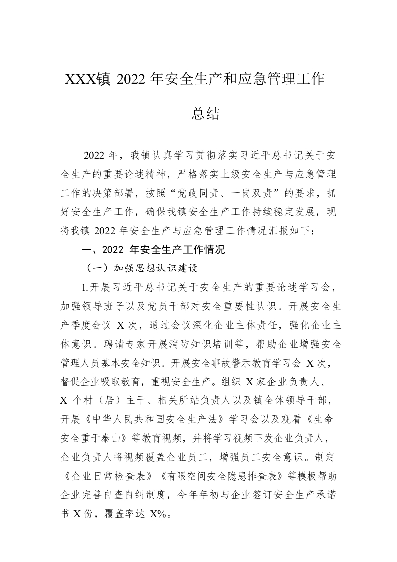 / XX镇2022年安全生产和应急管理工作总结(20221202)