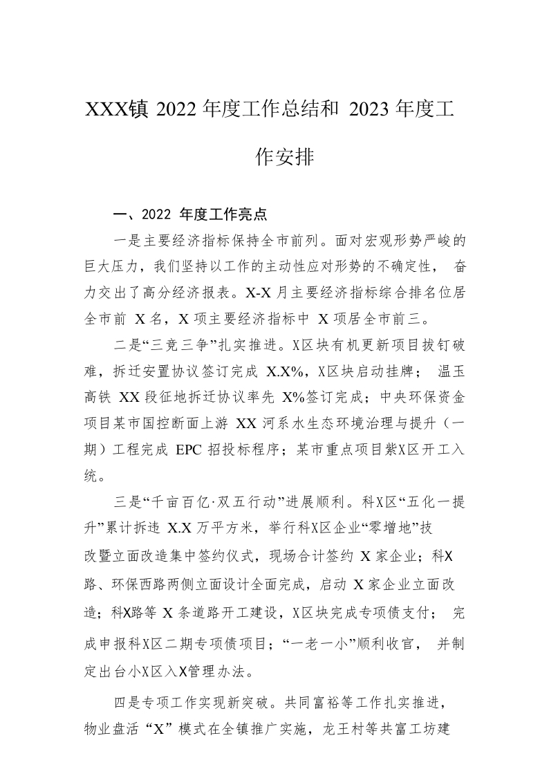 / XX镇2022年度工作总结和2023年度工作安排1