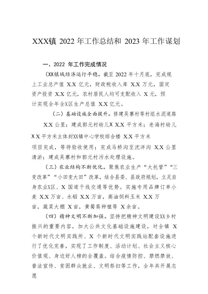 / XX镇2022年工作总结和2023年工作谋划1