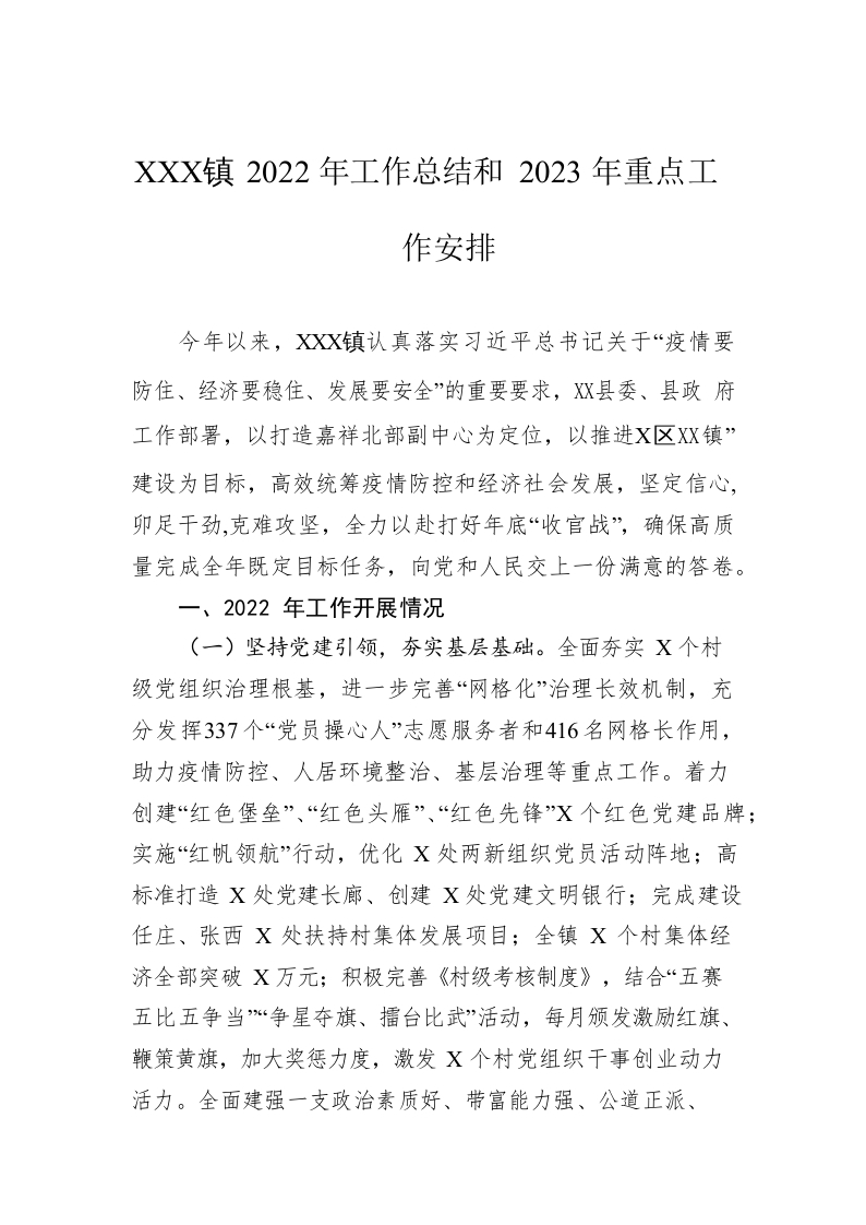 / XX镇2022年工作总结和2023年重点工作安排