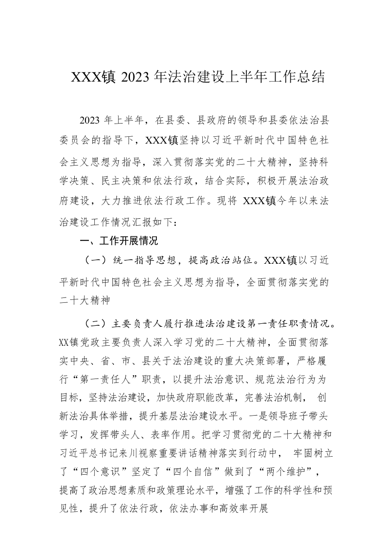 / XX镇2023年法治建设上半年工作总结(20230614)