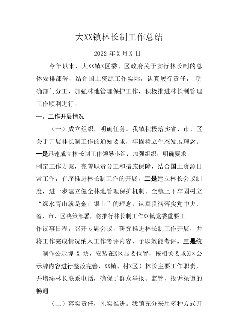 / XX镇林长制工作总结