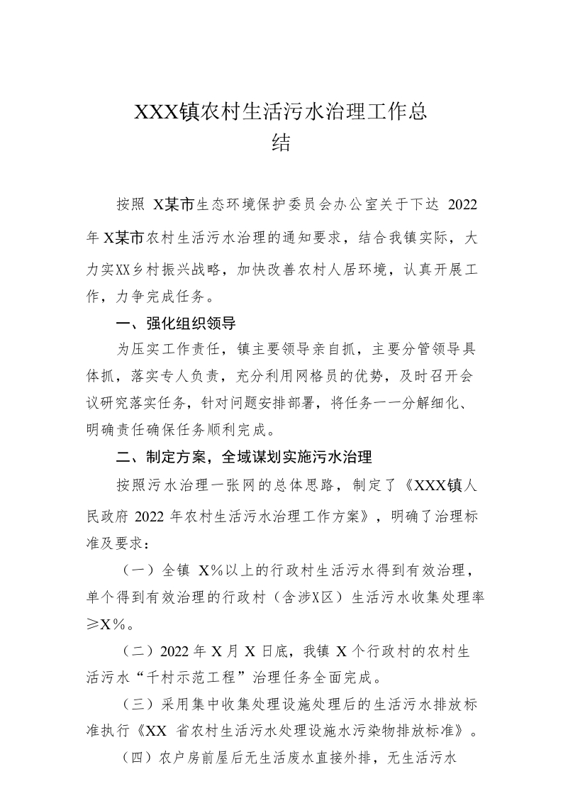 / XX镇农村生活污水治理工作总结