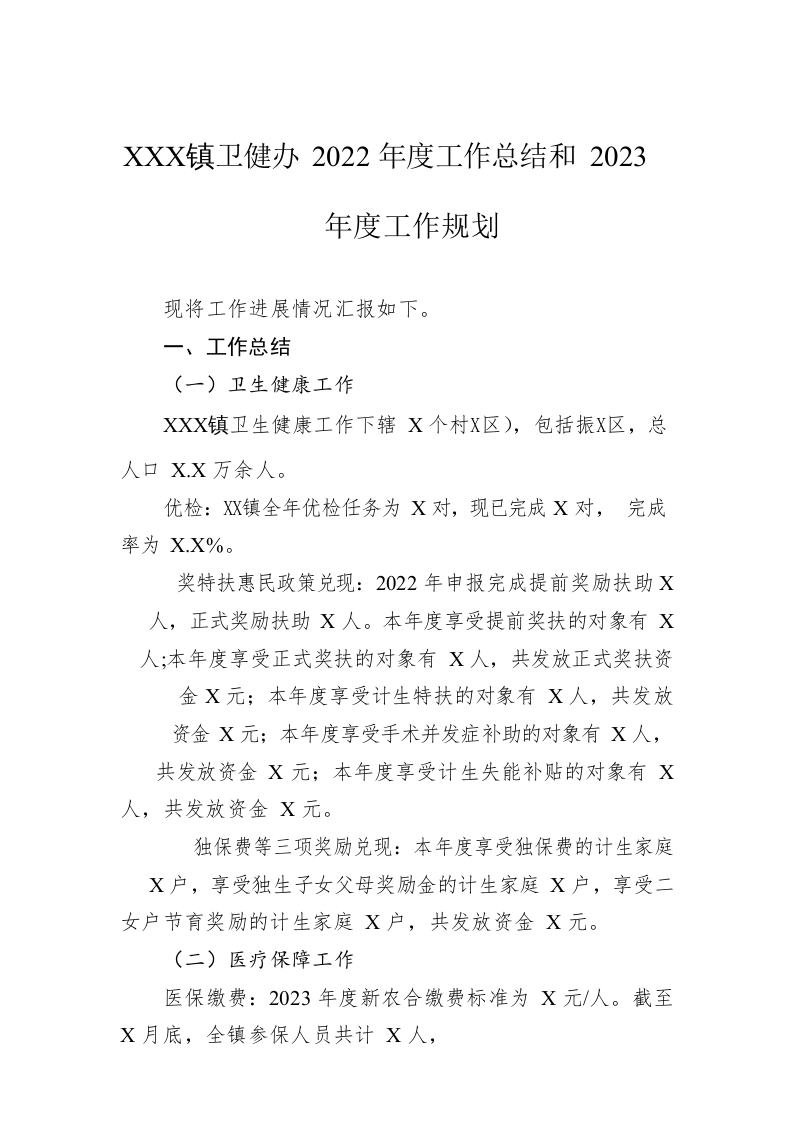 XX镇卫健办2022年度工作总结和2023年度工作规划