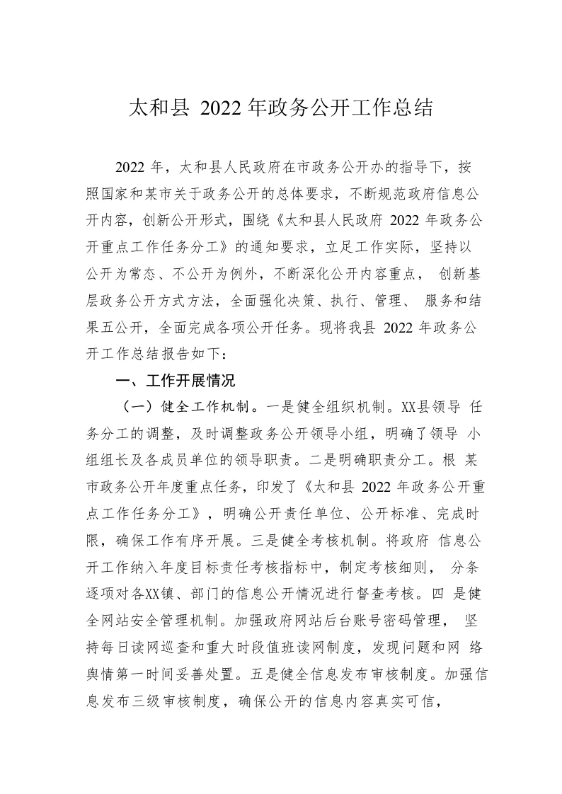 / X县2022年政务公开工作总结(20221215)