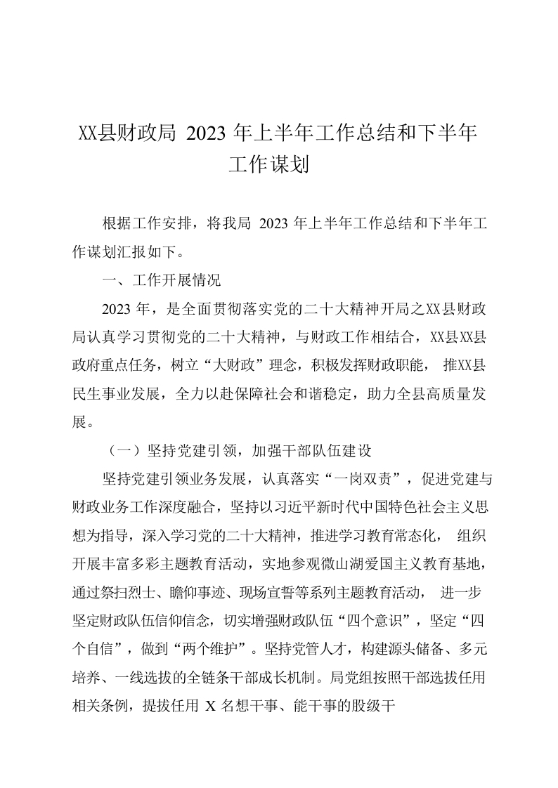 / X县财政局2023年上半年工作总结和下半年工作谋划