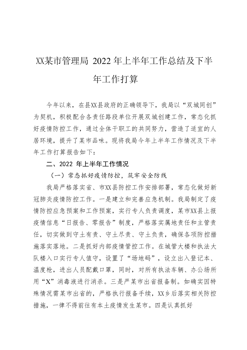 / X县城市管理局2022年上半年工作总结及下半年工作打算