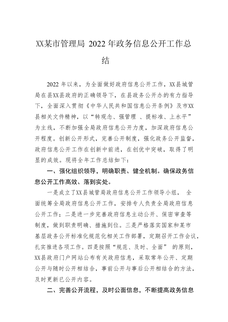 / X县城市管理局2022年政务信息公开工作总结(20221209)