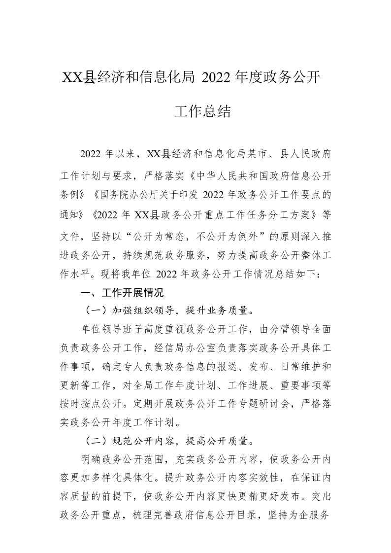/ X县经济和信息化局2022年度政务公开工作总结(20221208)