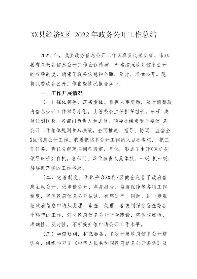 / X县经济开发区2022年政务公开工作总结(20221220)