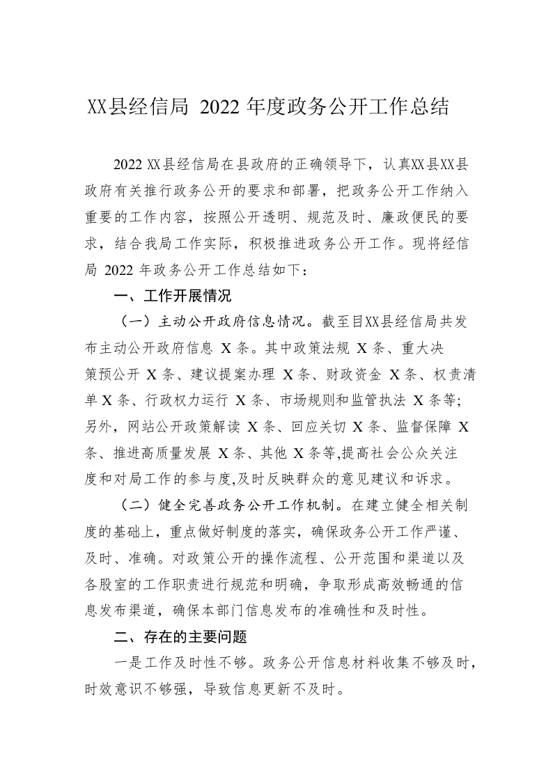 / X县经信局2022年度政务公开工作总结(20221219)