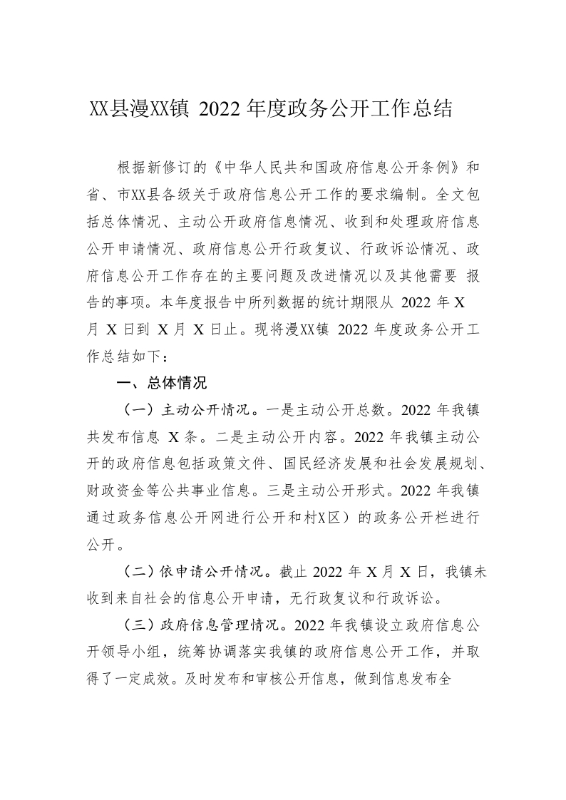 / X县漫水河镇2022年度政务公开工作总结(20221220)