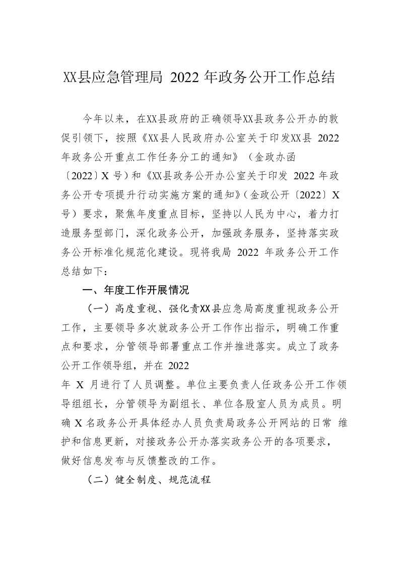 / X县应急管理局2022年政务公开工作总结(20221212)