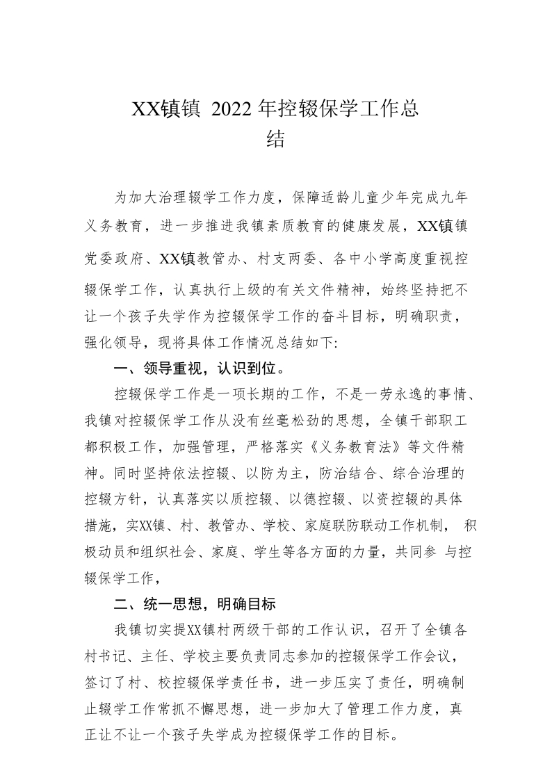 / X镇镇2022年控辍保学工作总结(20221102)