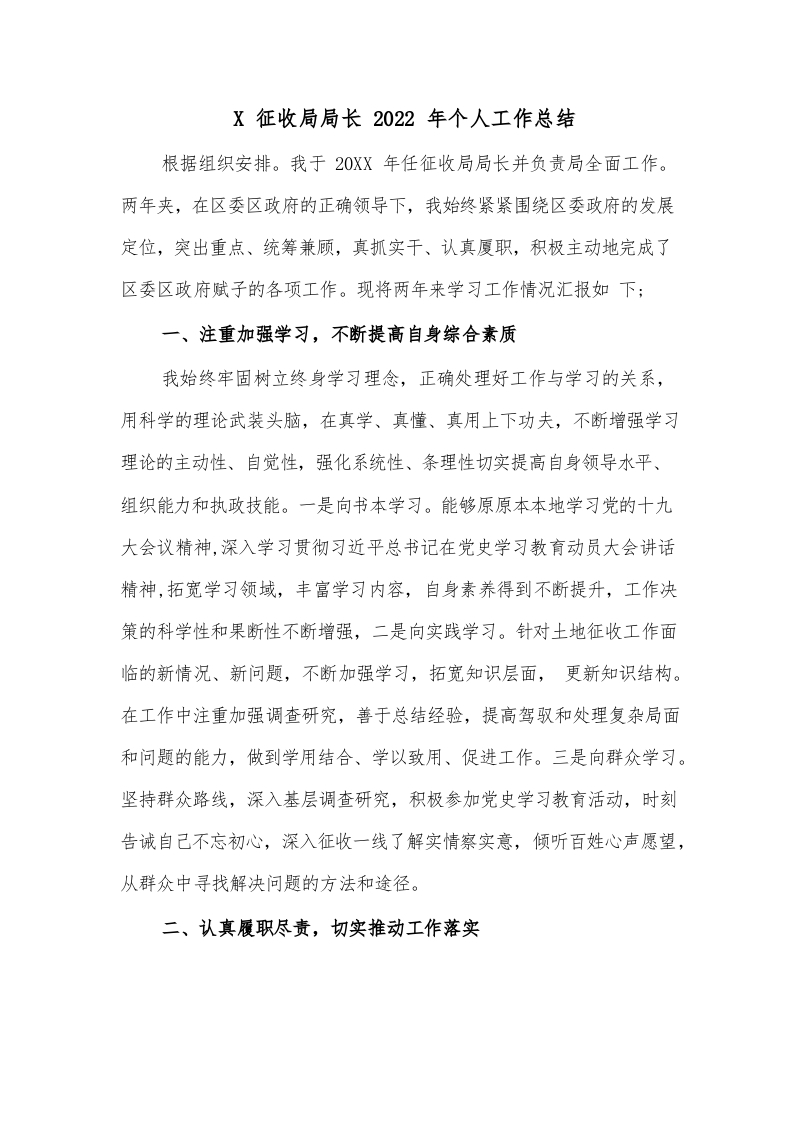 / X征收局局长2022年个人工作总结