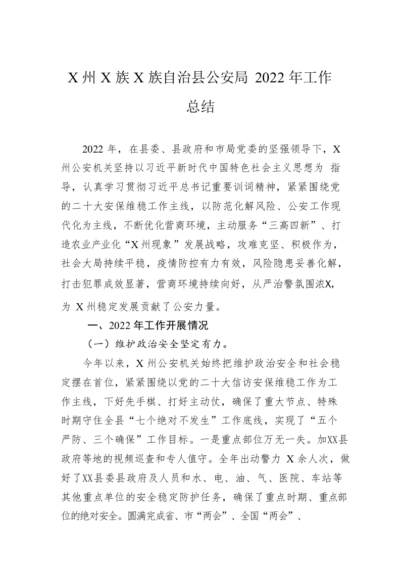 / X州X族X族自治县公安局2022年工作总结(20221220)