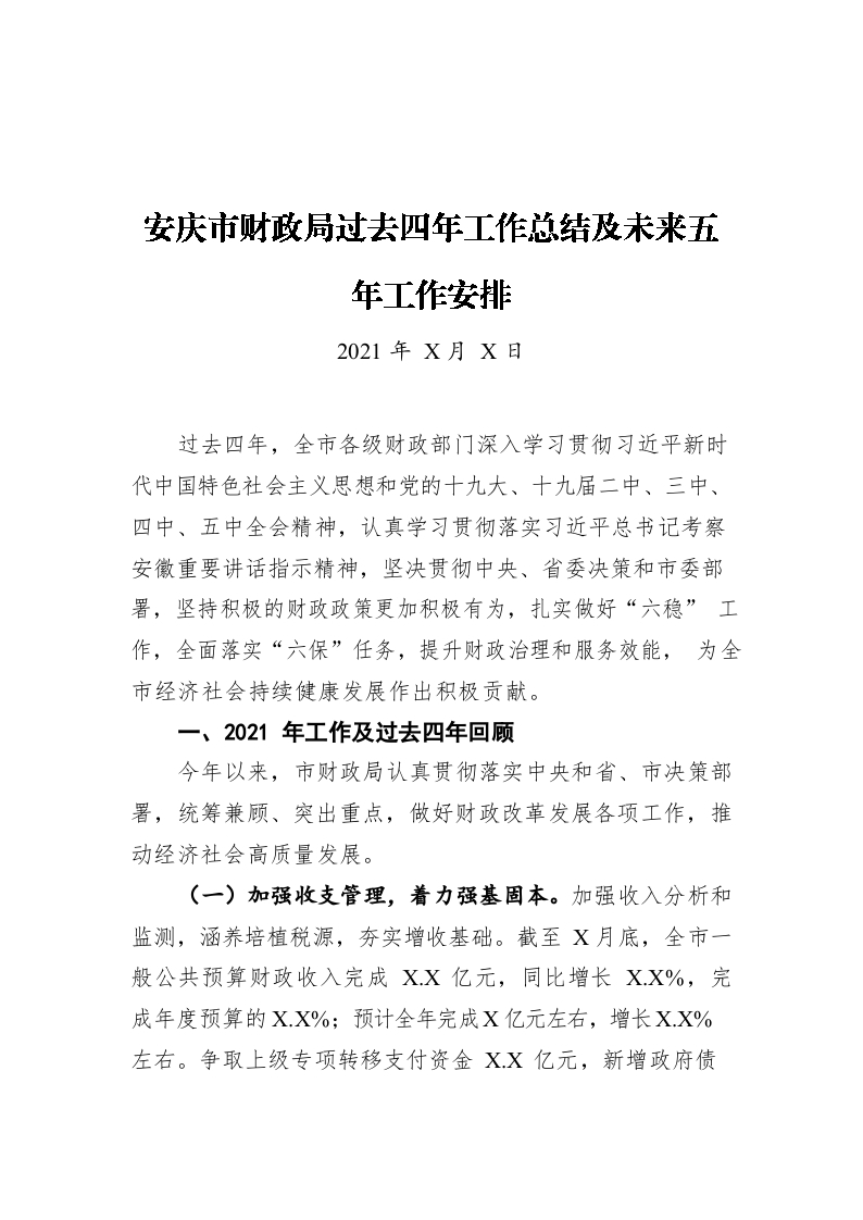 / 安庆市财政局过去四年工作总结及未来五年工作安排(20211222)