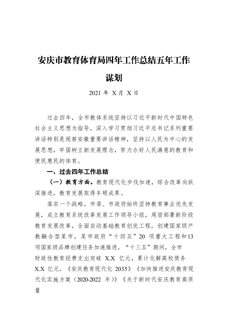 / 安庆市教育体育局四年工作总结五年工作谋划(20211222)