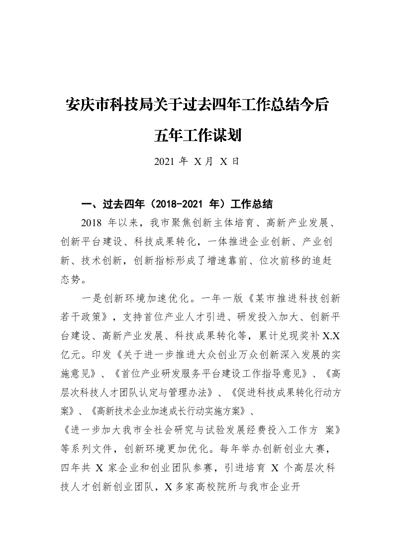 / 安庆市科技局关于过去四年工作总结今后五年工作谋划(20211222)