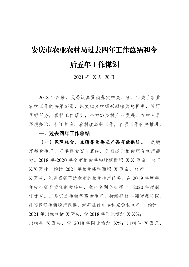/ 安庆市农业农村局过去四年工作总结和今后五年工作谋划(20211222)
