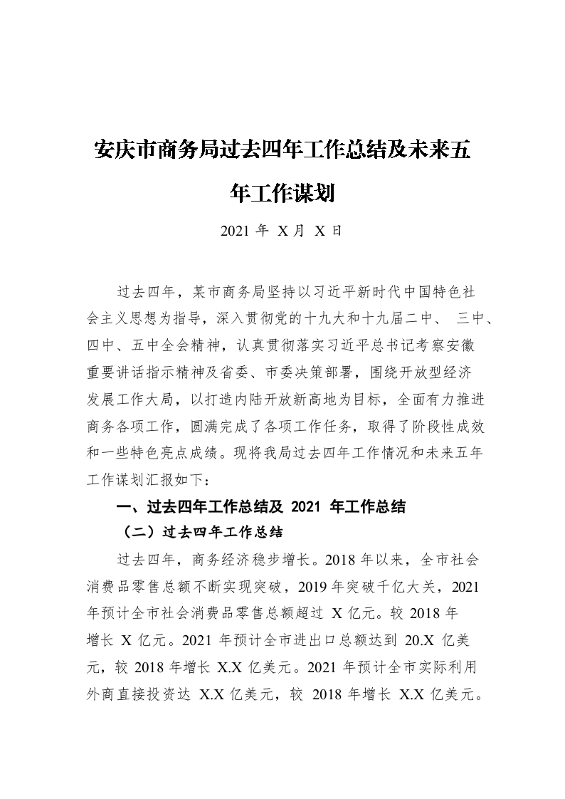 / 安庆市商务局过去四年工作总结及未来五年工作谋划(20211222)
