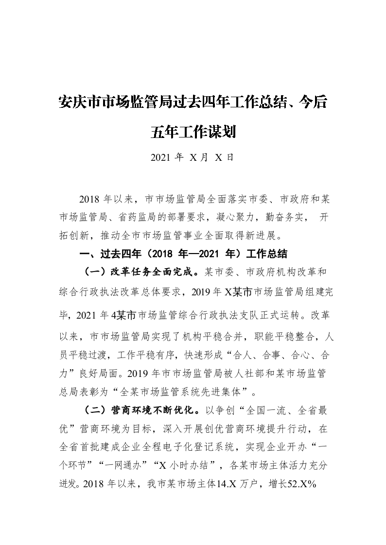 / 安庆市市场监管局过去四年工作总结、今后五年工作谋划(20221222)