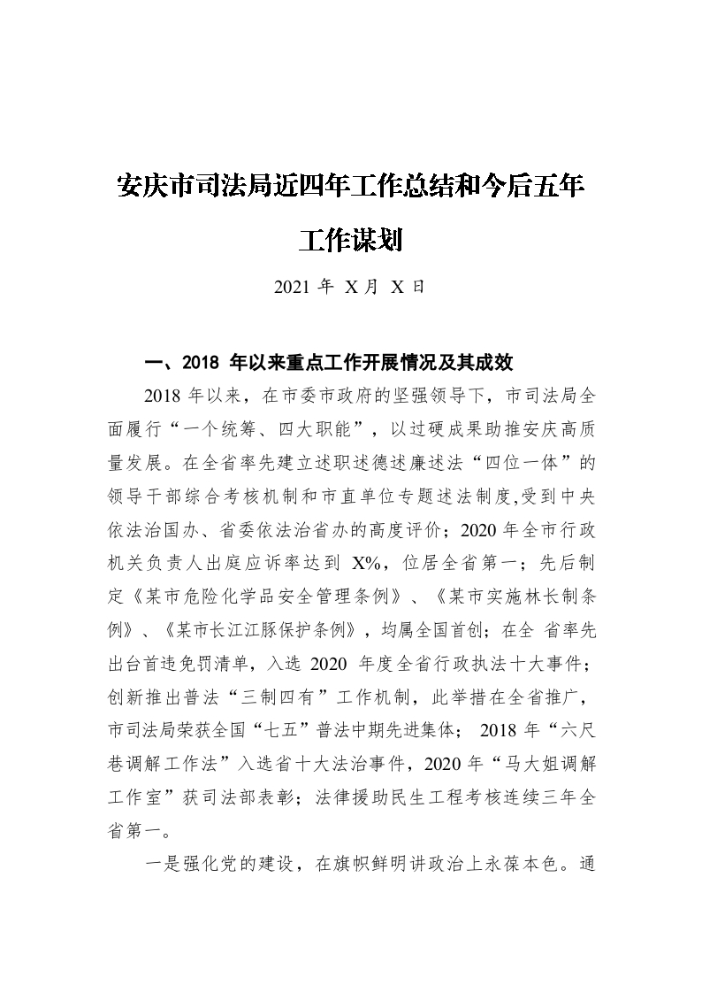 / 安庆市司法局近四年工作总结和今后五年工作谋划(20211222)