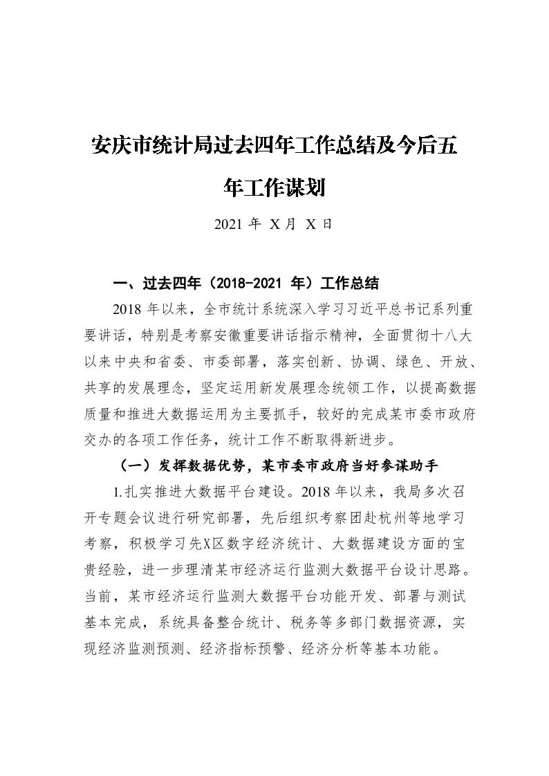 / 安庆市统计局过去四年工作总结及今后五年工作谋划(20211222)