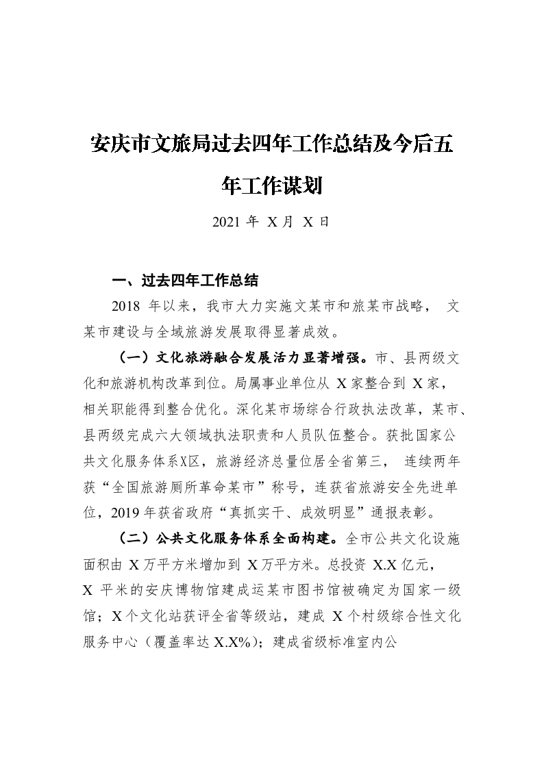 / 安庆市文旅局过去四年工作总结及今后五年工作谋划(20211222)