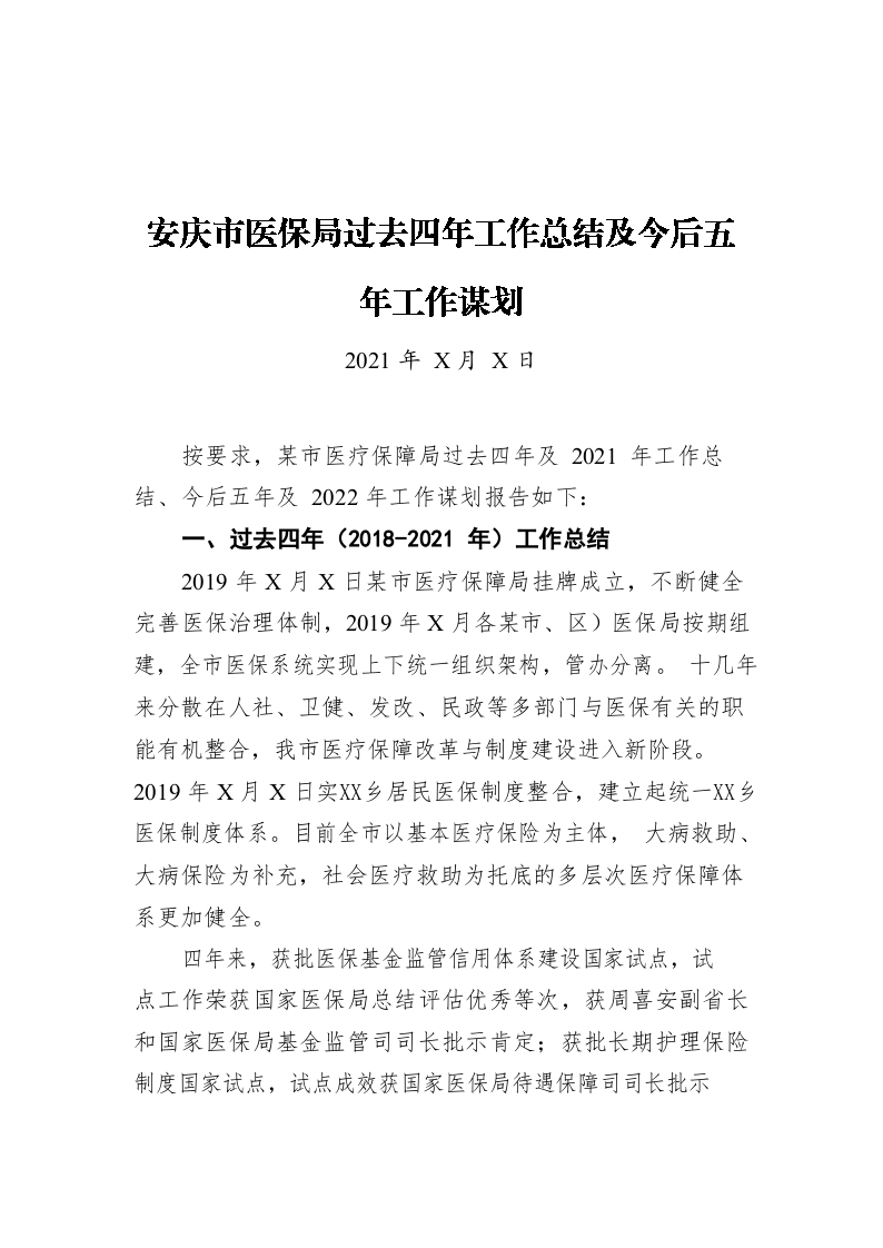 / 安庆市医保局过去四年工作总结及今后五年工作谋划(20211222)