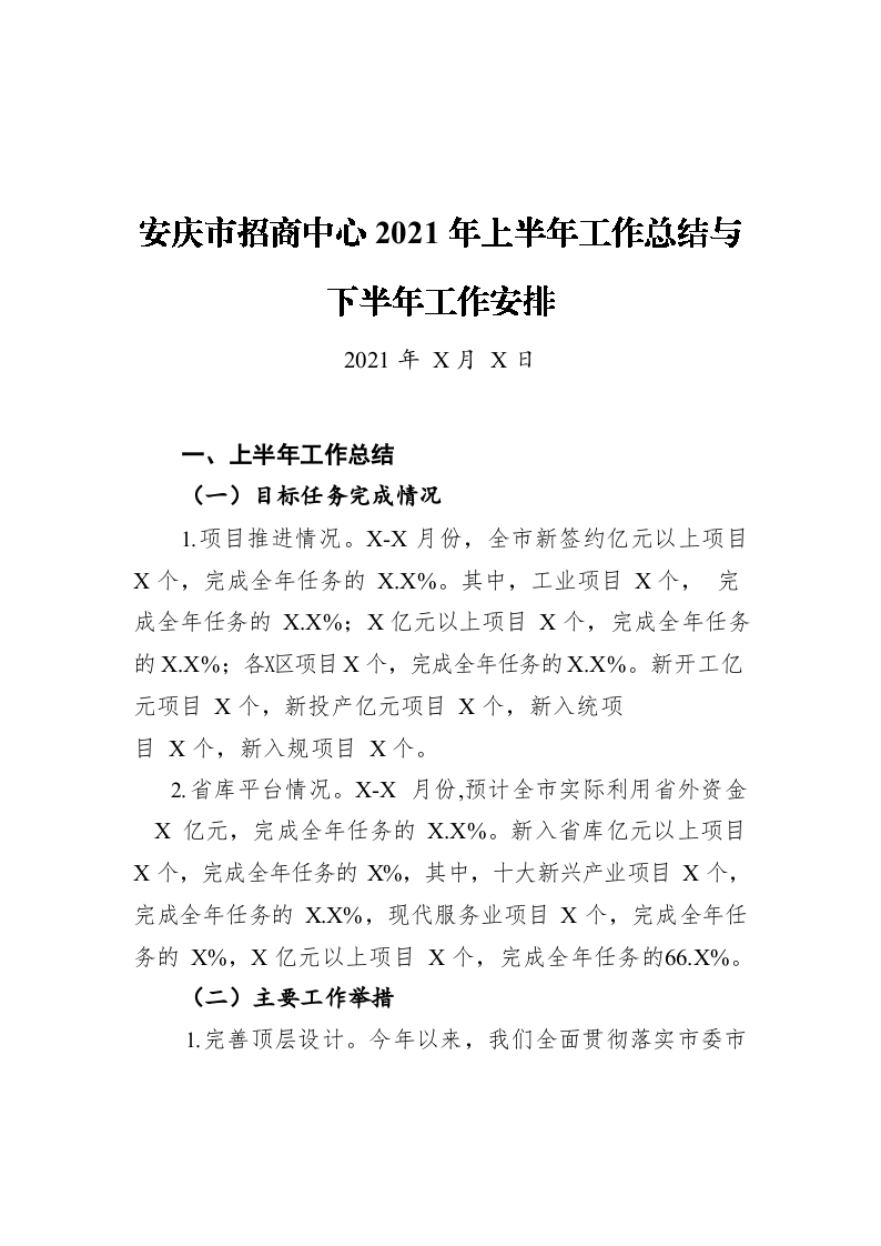 / 安庆市招商中心2021年上半年工作总结与下半年工作安排(20210715)