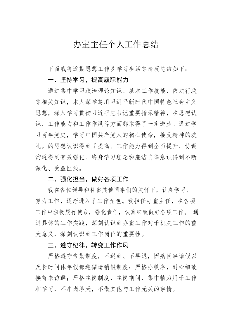 办室主任个人工作总结