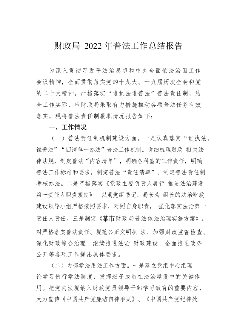 / 财政局2022年普法工作总结报告