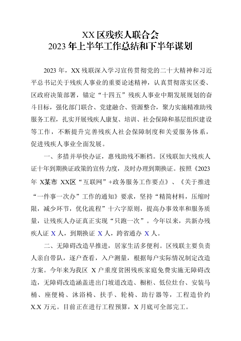/ 残联2023年度上半年工作总结及下半年工作谋划