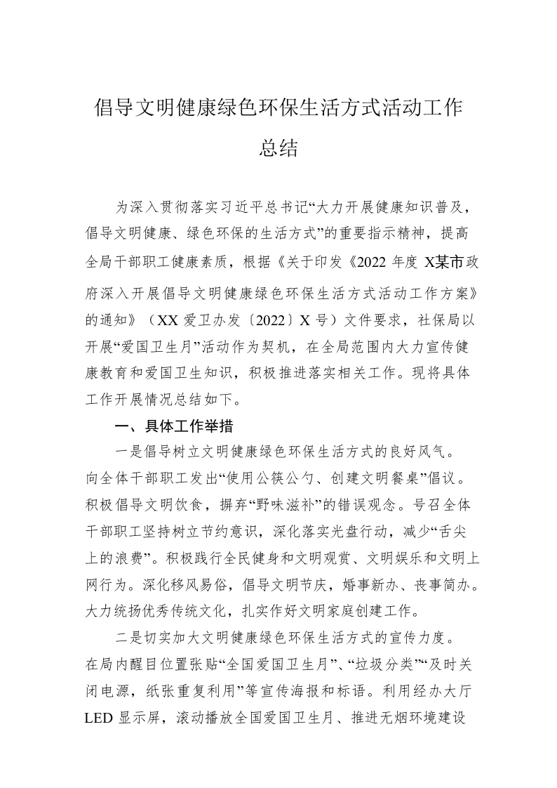 倡导文明健康绿色环保生活方式活动工作总结
