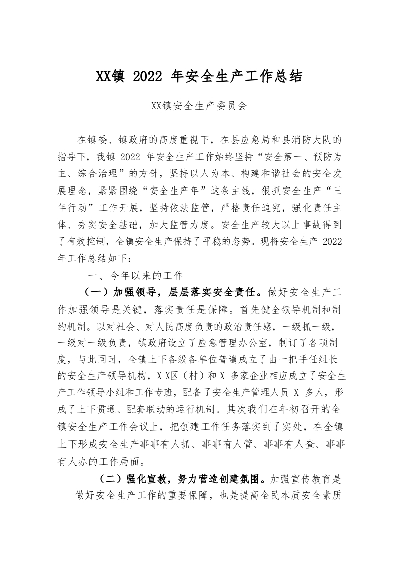 / 城关镇2022年安全生产工作总结
